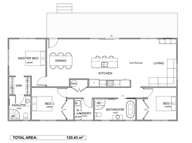 Horizon 120 delivers a spacious, well considered layout with a generous open plan kitchen, dining and living area that forms the heart of the home. The master suite features a private ensuite and walk in robe, while the remaining bedrooms sit comfortably nearby for family living. A full bathroom and separate laundry add everyday practicality. With outdoor entertainment possibilities, this design offers smart flow, thoughtful detailing and lasting comfort across a larger footprint.